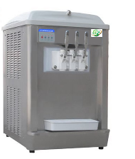 Máquina de helado tipo “soft”. Tiene una capacidad en la tolva de 1,2 kg por tolva. Tienen una producción de hasta 18kg por hora de tres sabores (dos sabores de helados aislados y un sabor mix). Transmisión por correa y caja reductora, motor de 1HP, compresor francés L´Hermetique con refrigerante R404a, teclado con controlador electrónico de dureza del helado, sistema de limpieza automática.